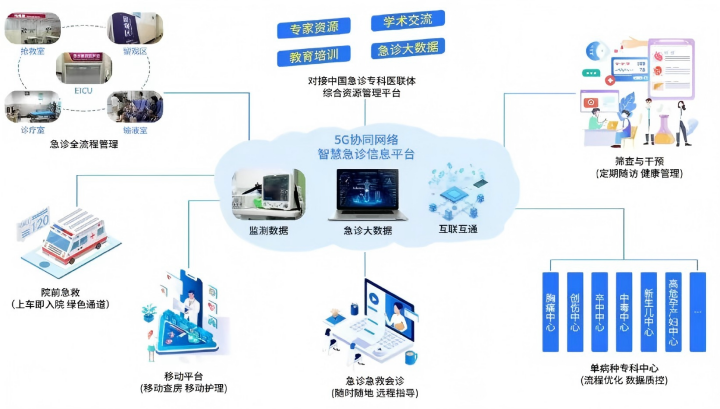4) 数据互通:打通院前、院内、区域平台数据壁垒,实现共享;