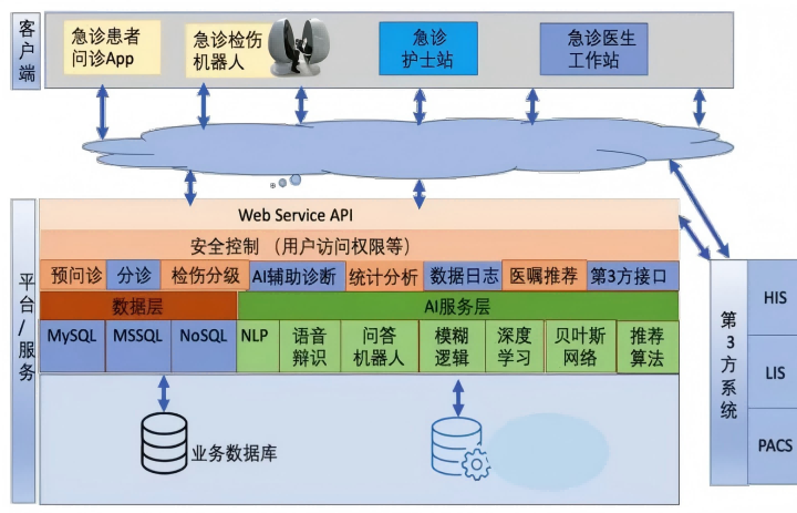 2) 数据中台:整合急救、电子病历、健康档案等数据,构建急诊知识图谱;